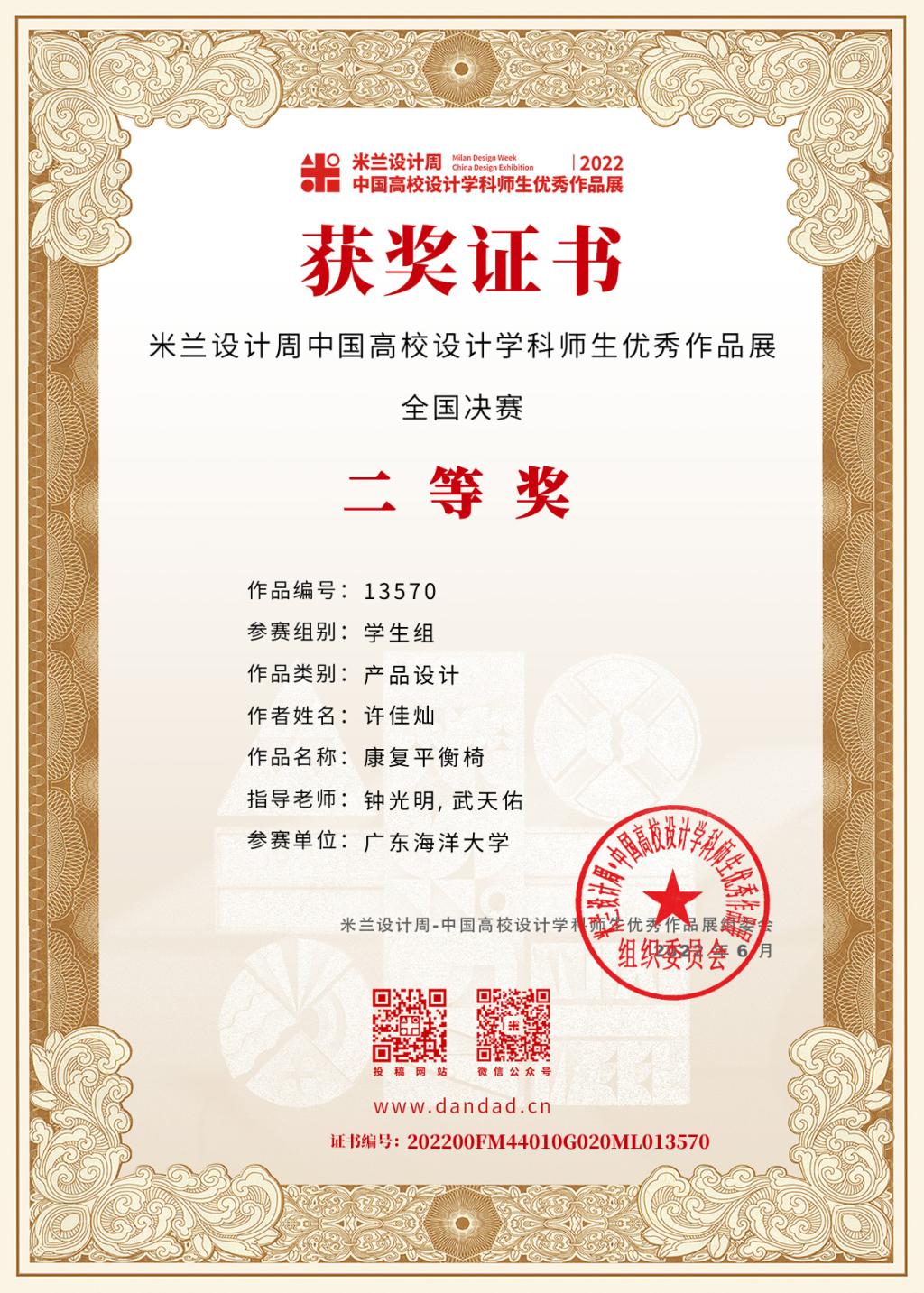 近日,2022年第六届米兰设计周——中国高校设计学科师生优秀作品展全国总决赛评审工作已全部结束。公司工业设计员工获得全国总决赛二等奖2项、三等奖11项,获得广东省赛区一等奖14项、二等奖11项、三等奖14项的成绩,成果喜人。