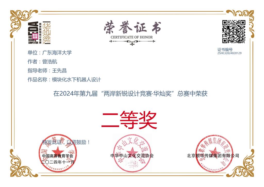 2 beat365官方登录 模块化水下机器人设计 曾浩航 王先昌 全国二等奖