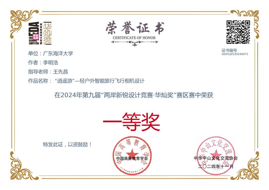 4 beat365官方登录 “逍遥游”—轻户外智能旅行飞行相机设计 李明浩 王先昌 全国三等奖