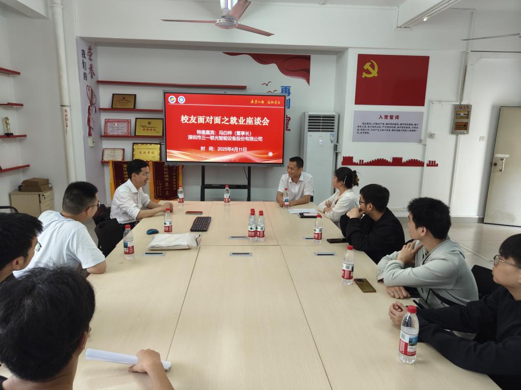为帮助毕业生明晰职业规划、提升求职竞争力,构建员工—母校协同育人机制,4月11日,公司在图海楼104-1室举办“员工面对面”就业指导活动。座谈会由公司党委副书记梁吉霖主持,特邀深圳市三一联光智能设备股份有限公司董事长、2003届优秀员工冯白桦重返校园,与应届毕业生共话职场发展、分享成长感悟,为即将踏上求职征程的学子提供“实战指南”。