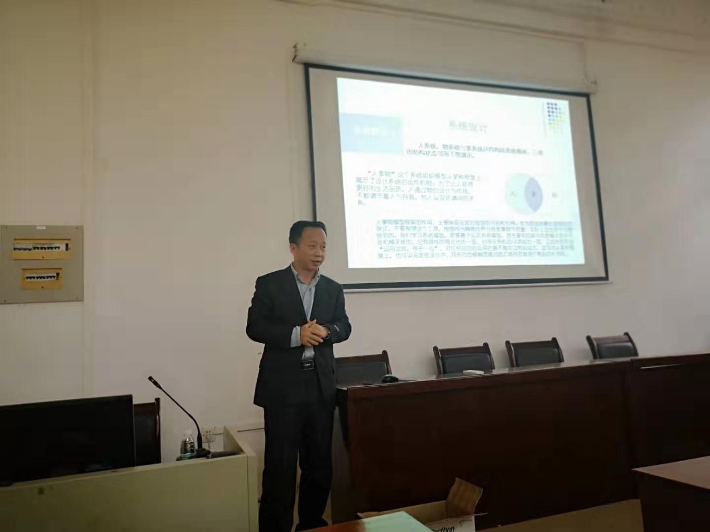 首先,机械与动力工程公司副经理刘海涛致辞。他向大家介绍了管少平教授所取得的成就。管少平教授是教育部高等公司机械类专业教学指导委员会工业设计专业教学指导委员会委员,兼任中国工业设计协会教育分会常务理事、中国建筑文化研究会风景园林委员分副会长等多个头衔,在工业设计、景观规划设计、室内设计、展示设计等多个设计专业领域有着深入的研究和实践,并为多家企业做过产品开发设计服务。