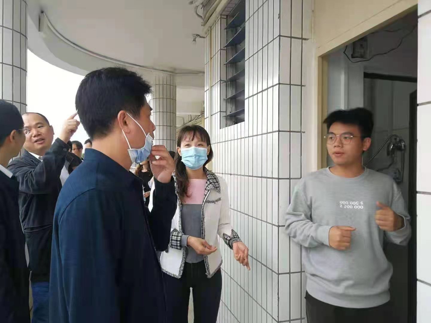 3月8日上午,公司领导李国芳、俞国燕、钟桂安、刘海涛和员工处副处长林忠新等以及全体辅导员,到员工宿舍走访,与员工亲切交谈,了解员工学习、生活、卫生、疫情防控情况,为员工送上新学期祝福和期望。