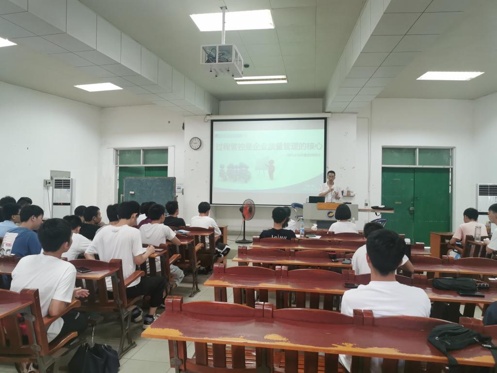 乔月忠部长和张素萍工程师根据企业实际和长期工作经验做了题为《现代企业质量保证与设计图纸规范》的报告,他们从德利公司质量保证体制现状、企业质量过程管控、实物部件设计流程、装配图与零件图尺寸标注及国内外图纸规范对比等六方面的内容做了详细的介绍。在报告中,乔月忠部长结合工作实践讲授了质量过程管控定义并结合实际工作对出现的问题和解决的办法进行了精彩的论述,让在座的师生感受到了与校园课堂不一样的课程,让员工对现代企业质量保证与设计图纸规范有了更深刻的认识和理解。