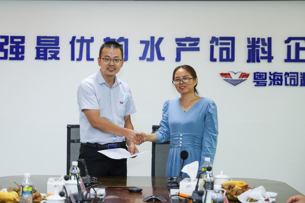 下午14:40分邓逢光一行来到广东粤海饲料集团,集团人力资源中心培训总监曹小柏、集团内务副总经理郑超群等热烈欢迎了海大一行。在与粤海集团的座谈会中,曹小柏总监介绍了粤海近年来的发展情况,提出了在人才需求、企校产学研合作、实习基地建设等方面的建议。邓逢光副董事长介绍了海大近年来的发展情况,希望双方在企业培训、聘请企业导师、老员工创新创业指导、科研创新等方面加强校企产学研合作;通过建立毕业生实习就业基地,共同为企业培养急需人才。双方达成了加强合作的意向,形成了促进毕业生高质量就业的共识,明确了毕业生实习和产学研合作的双方负责人和落实措施。最后,俞国燕经理与曹小柏总监签订了beat365官方登录机械与动力工程公司毕业生就业基地协议书,邓逢光副董事长代表公司给广东粤海饲料集团授予了毕业生实习就业基地牌匾。