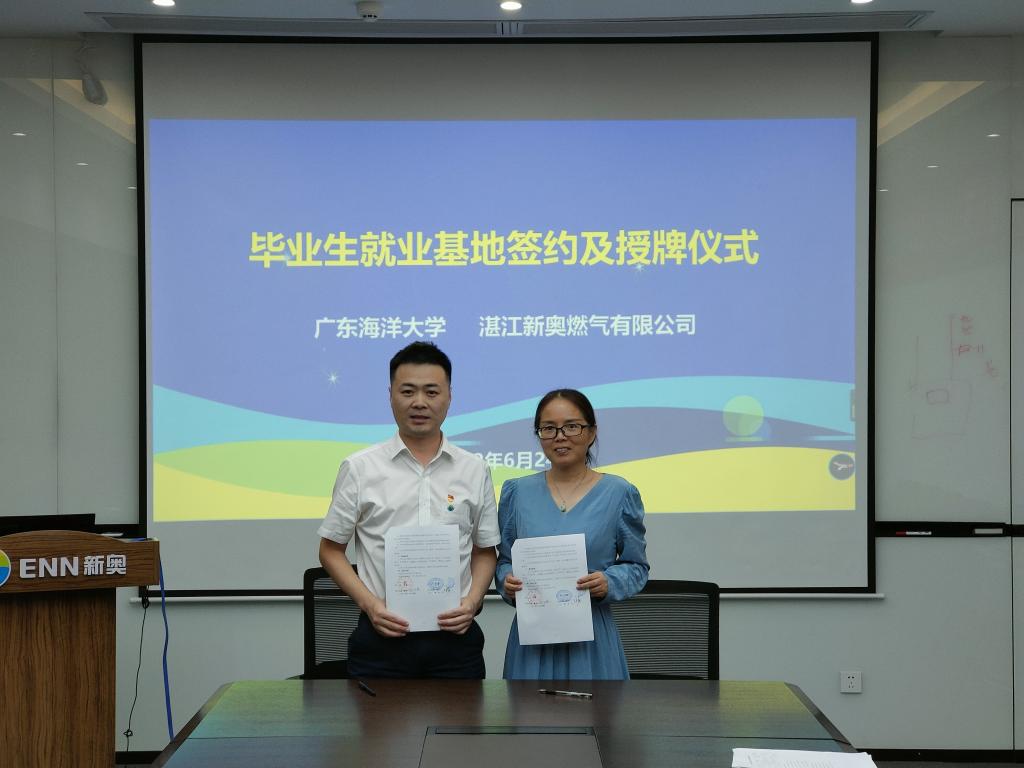 下午16:40分邓逢光一行来到湛江新奥燃气有限公司,公司党委书记陈证羽、副总经理徐勇、总工程师许洪洲等热烈欢迎了海大一行。在与湛江新奥燃气有限公司的座谈会中,邓逢光副董事长介绍了公司的基本情况,提出进一步加强校企产学研合作,共同为企业培养急需人才,建议尽快建立毕业生实习就业基地。陈证羽书记介绍了新奥近年来党建工作的发展情况,希望未来能够和公司在党建方面进行合作。徐勇副总经理介绍了企业近年来的经营和发展历程、产业需求、人才需求和未来发展战略。双方在实习基地建设、老员工创新创业指导、科研创新等方面进行深入合作达成共识,明确了毕业生实习和产学研合作的双方负责人和落实措施。最后,俞国燕经理与徐勇副总经理签订了beat365官方登录机械与动力工程公司毕业生就业基地协议书,邓逢光副董事长代表公司给湛江新奥燃气有限公司授予了毕业生实习就业基地牌匾。