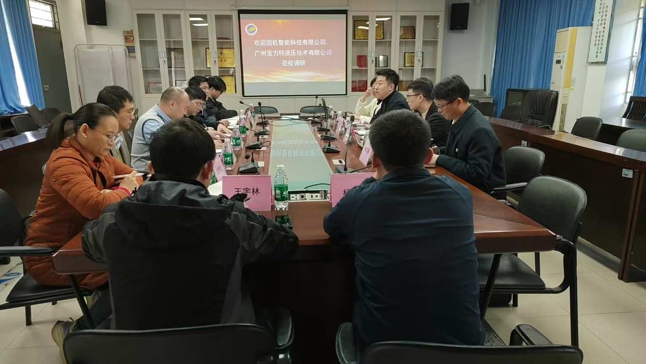 12月16日下午,国机智能科技有限公司智能制造事业部总经理梅雪川、科技质量部智能板块负责人叶敏,广州宝力特液压技术有限公司副总经理魏应展、研发部部长吴海丹一行莅临公司,就产学研合作事宜进行深入交流。beat365官方登录经理刘海涛、副经理刘强、赵首博及相关教师参加了座谈会。