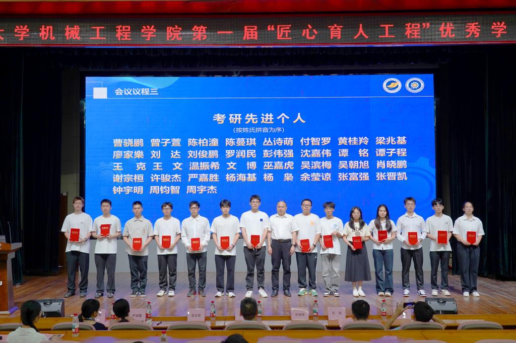 会上,公司副经理刘强宣读了《关于表彰公司第一届“匠心育人工程”优秀员工的决定》,对在2023-2024学年学风建设中表现突出的集体和个人进行公开表彰。本次表彰共设集体与个人两大类奖项。材料成型及控制工程1212班等4个班级荣获公司先进集体称号;曹骁鹏等140名员工分别摘得“考研先进个人”“学习之星”“科创之星”“励志之星”等多项荣誉。与会领导依次为获奖代表颁发奖状与锦旗。